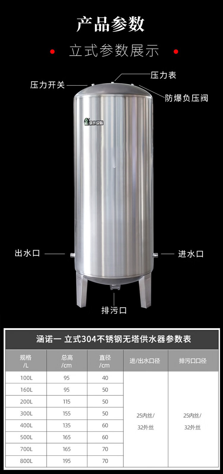 304不銹鋼壓力罐 家用全自動無塔供水器 增壓儲水罐